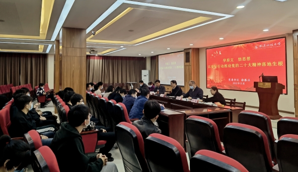 徐雁冰從深悟大會(huì)的主題、深悟過去五年的工作和新時(shí)代十年偉大變革、深悟開辟馬克思主義中國話時(shí)代化的新境界、深悟新時(shí)代新征程中國共產(chǎn)黨的使命任務(wù)、深悟教育科技人才重大支撐、深悟團(tuán)結(jié)奮斗與青年強(qiáng)則國家強(qiáng)等六個(gè)方面,對(duì)黨的二十大報(bào)告作了深入淺出的分析與解讀,并結(jié)合學(xué)校、學(xué)院實(shí)際,就如何學(xué)習(xí)貫徹二十大報(bào)告精神提出了具體的要求,為在場師生上了一場精彩的思政課。
