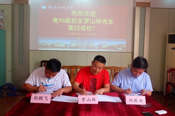 武科大網(wǎng)訊(通訊員吳廣良)7月31日,我校96級電氣工程系校友羅山林于信息學(xué)院407會議室其簽訂捐贈協(xié)議,為我校教育發(fā)展捐資20萬元,慶賀母校建校120周年。