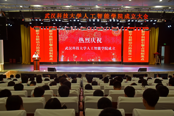 黨委書記孔建益、校長倪紅衛(wèi),中國科學院院士吳宏鑫、中國工程院院士毛新平,湖北省教育廳二級巡視員趙澤剛、青山區(qū)人民政府副區(qū)長駱蓉,共同為人工智能學院揭牌。