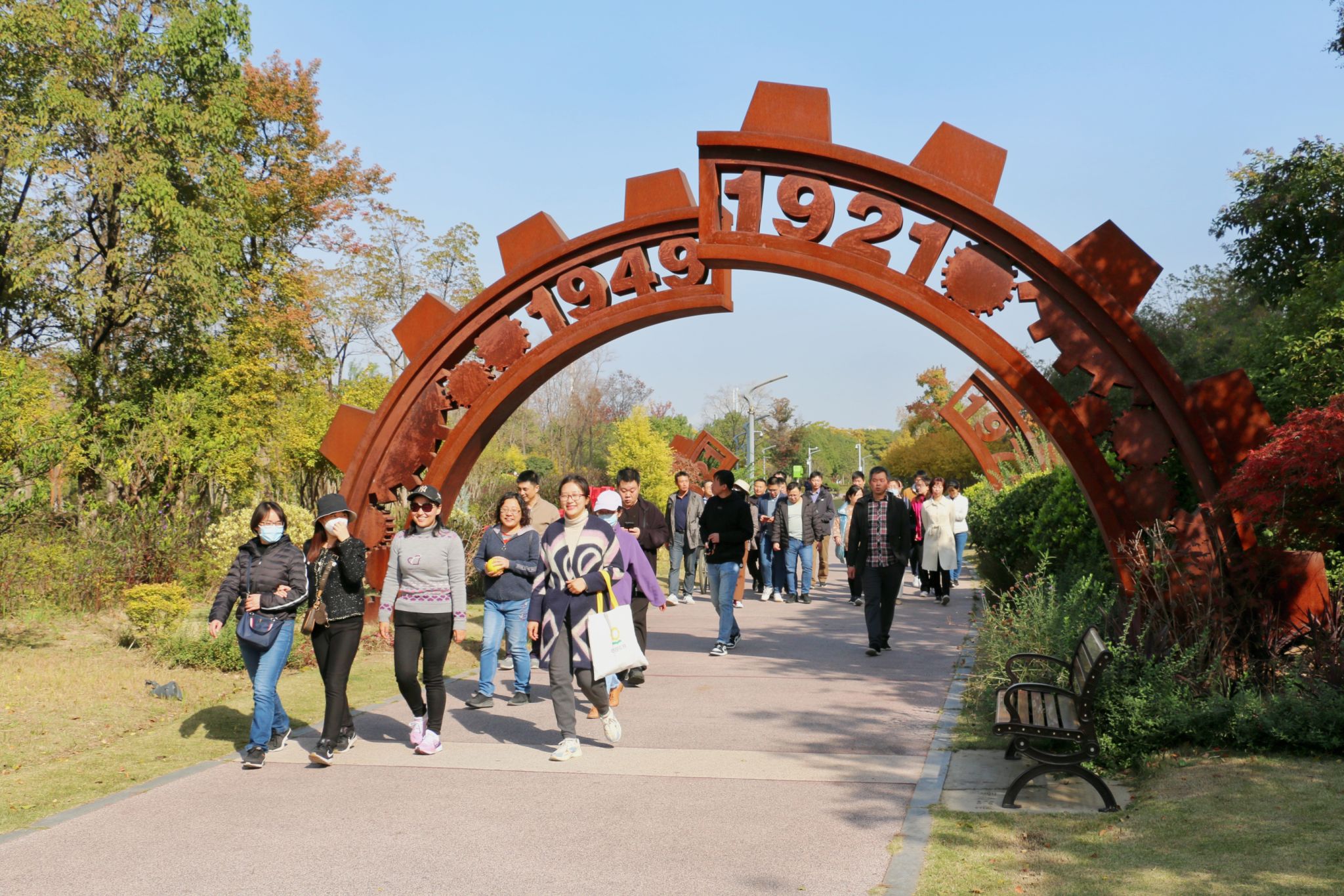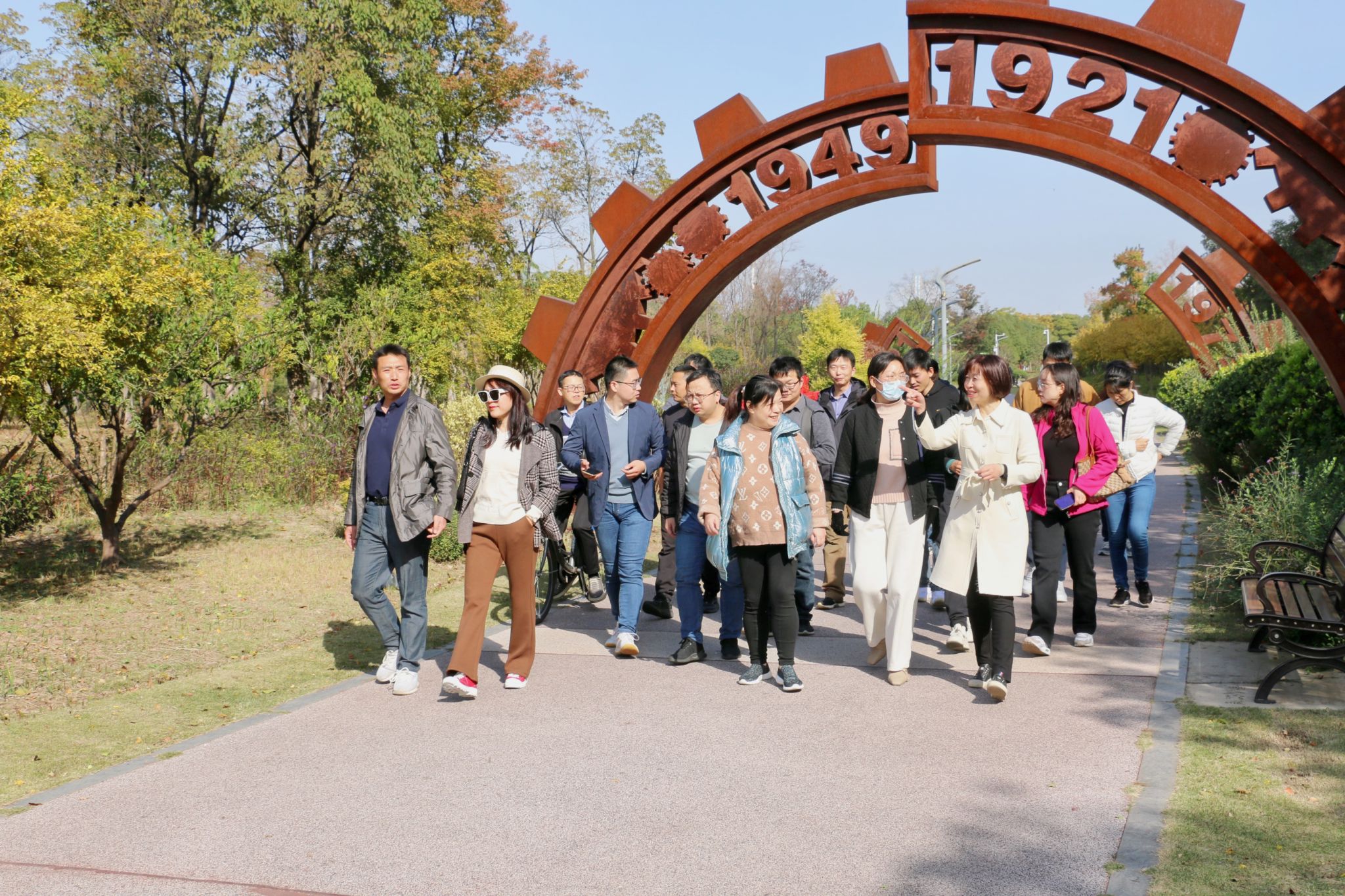 在初冬溫暖的陽光下,老師們漫步在萬里無云的藍(lán)天下、欣賞多彩的江灘風(fēng)景,感受了溫暖的冬日陽光。 在江灘紅色教育基地,老師們學(xué)習(xí)回顧黨的發(fā)展壯大歷史,感受建黨建國以來的巨大變化。