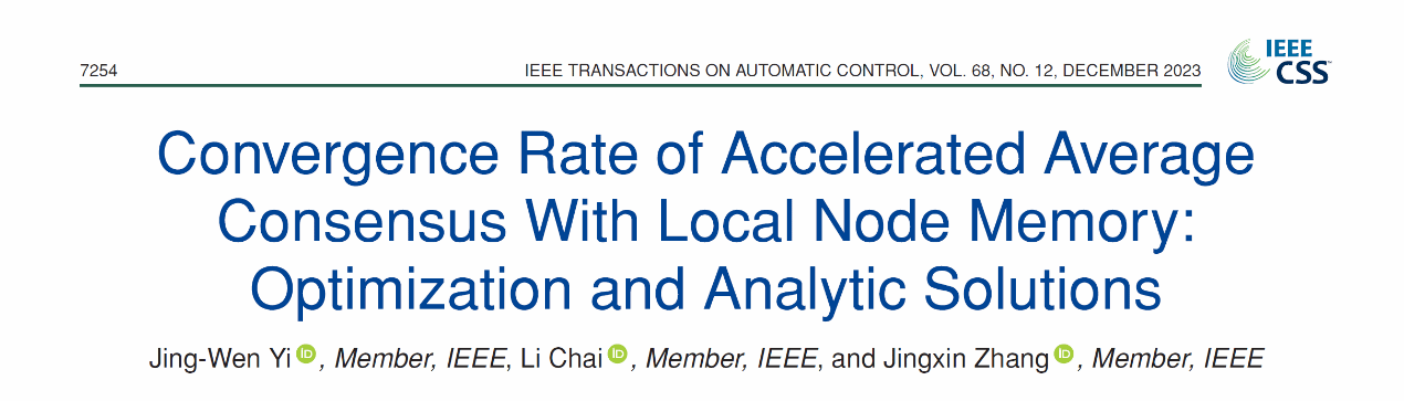 近日,人工智能與信息融合研究院在多智能體平均一致性研究中取得重要進(jìn)展,解決了記憶加速算法研究中的幾個公開難題。研究結(jié)果以長文(full paper)發(fā)表在控制學(xué)科兩大頂級期刊之一的IEEE Transactions on Automatic Control (TAC),雙欄16頁。