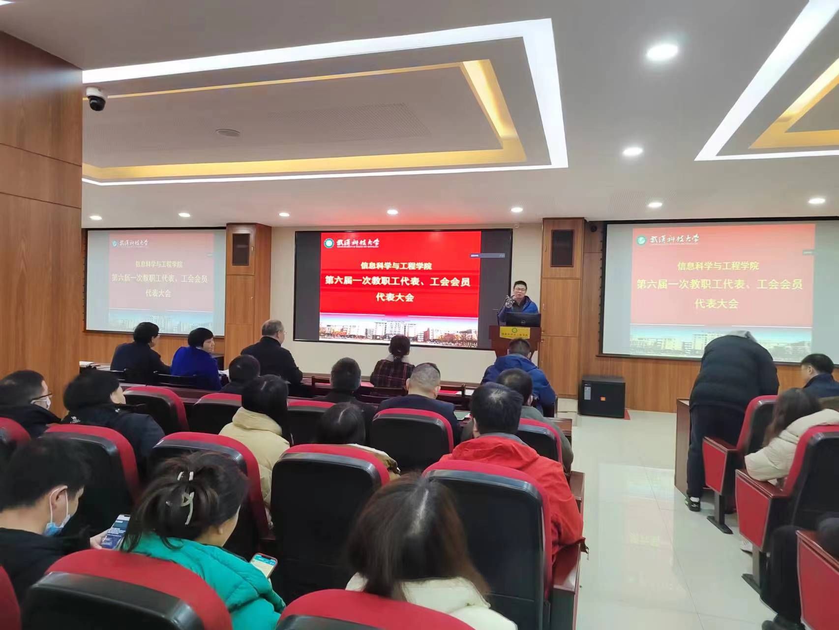李主席充分肯定了信息科學(xué)與工程學(xué)院過去的五年里在科學(xué)、教學(xué)、人才培養(yǎng)、分工會工作等方面取得的成績,并對學(xué)院今后的發(fā)展提出展望和期望,通過全體教職工的繼續(xù)努力,續(xù)寫學(xué)院發(fā)展的嶄新篇章。朱斌副院長總結(jié)了近五年的工會工作,劉振興院長全方位總結(jié)了學(xué)院的整體發(fā)展。