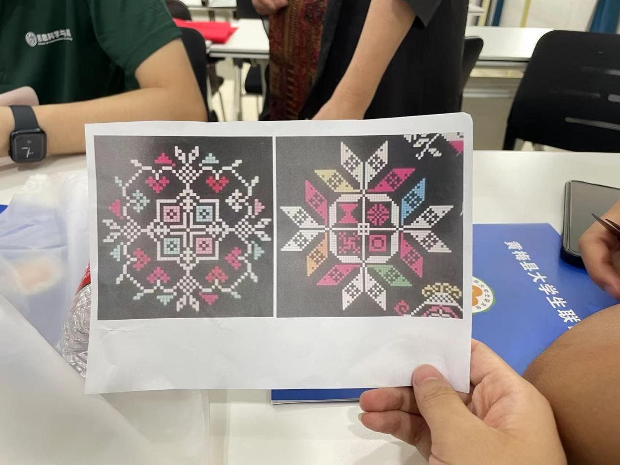 挑花,黃梅縣的文化瑰寶,這門古老且精湛的手藝讓學(xué)子們著迷。通過深入學(xué)習(xí),對(duì)挑花的歷史、工藝和文化含義有了更深的理解。副理事長(zhǎng)劉雄講解挑花圖案的分類、構(gòu)圖原理以及其象征寓意,使得學(xué)子們對(duì)這門藝術(shù)有了更深的認(rèn)識(shí)。