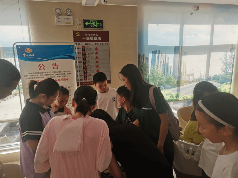 2023年7月10日,太陽剛剛露出地平線,實踐團(tuán)的志愿者們便早早地來到了西河橋黨群服務(wù)中心,和提早來的同學(xué)們聊起了天。