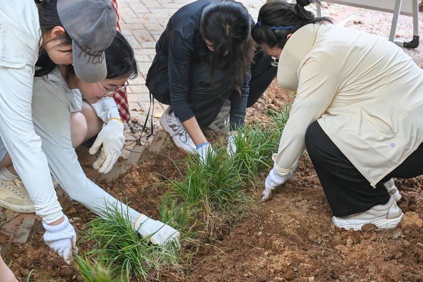 該校一站式學生社區(qū)外曾有數(shù)塊荒地,常年無人打理。如何激發(fā)學生主觀能動性,引導學生在春日揮灑汗水、享受勞動快樂?為此,永利集團88304官網(wǎng)電子信息、永利集團88304官網(wǎng)2023級輔導員鄧李欣選擇了社區(qū)外的空地,移栽月季,并購買向日葵、牡丹、花生、番茄等易于養(yǎng)育的植物,邀請學生充當“開荒人”。“沒想到學生都很積極,有一百余人加入了種植團隊。”鄧李欣表示。