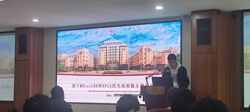 圖2.黃澤豐做“基于MDLatLRR和KPCA的光場圖像全聚焦融合”的報告