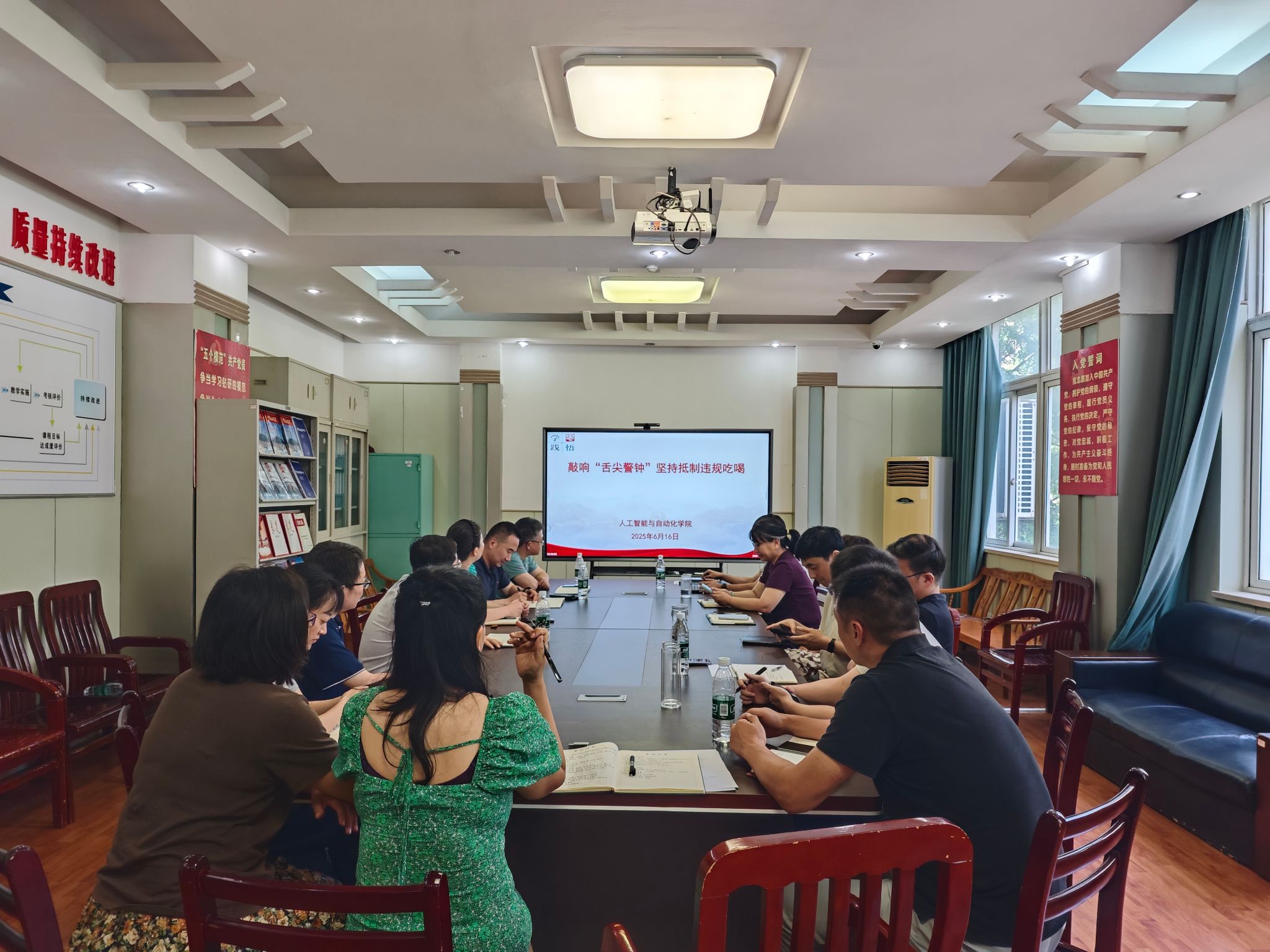 會上,學(xué)院黨委書記冒穎首先傳達了中央層面深入貫徹中央八項規(guī)定精神學(xué)習(xí)教育工作專班、中央紀委辦公廳關(guān)于2起黨員干部在學(xué)習(xí)教育期間違規(guī)吃喝、嚴重違反中央八項規(guī)定精神典型問題的通報、全省集中整治違規(guī)吃喝動員部署會精神和學(xué)校集中整治違規(guī)吃喝動員部署會精神。強調(diào),全體黨員干部要深刻認識違規(guī)吃喝問題的嚴重性和危害性,將其作為一項嚴肅的政治任務(wù)來抓,切實增強抵制違規(guī)吃喝的思想自覺、政治自覺和行動自覺。冒穎對學(xué)院下一步集中整治工作進行了詳細部署,要求各黨支部和全體黨員干部要提高政治站位,壓實主體責(zé)任,認真開展自查自糾;要加強宣傳教育,引導(dǎo)黨員干部明紀法、守底線;要強化監(jiān)督檢查,對頂風(fēng)違紀行為堅持“零容忍”,發(fā)現(xiàn)一起、查處一起,確保整治工作取得實效。